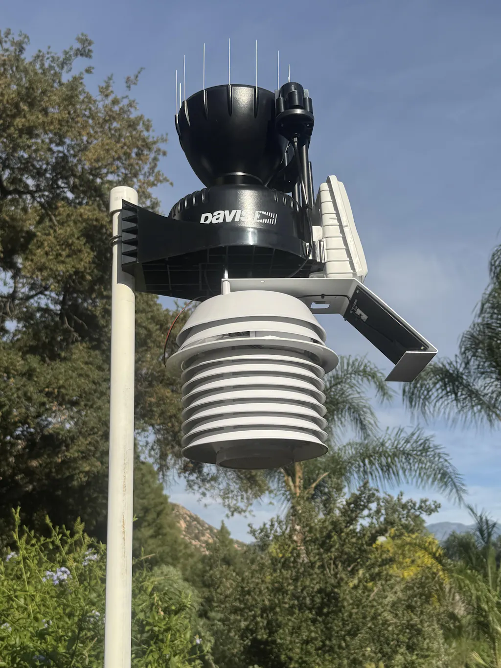 - Sensor suite includes outside temperature and humidity sensors in a passive radiation shield; wind speed and direction; rainfall; UV and solar radiation.